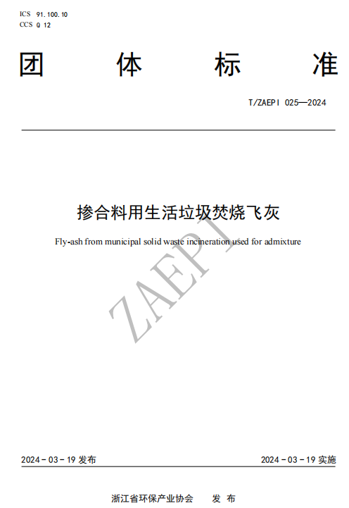 《摻合料用生活垃圾焚燒飛灰》標準號T/ZAEPI 025-2024,該標準由浙江京蘭環(huán)??萍加邢薰竞驼憬髮W主編,由浙江省環(huán)保產業(yè)協會于2024年3月19日批準發(fā)布,2024年3月19日起實施。文件規(guī)定了摻合料用生活垃圾焚燒飛灰的術語和定義、技術要求、試驗方法、檢驗規(guī)則、包裝、標志、運輸和貯存。文件適用于低溫熱分解及水洗解毒工藝處理后符合 HJ 1134規(guī)定的摻合料用生活垃圾焚燒飛灰,為后續(xù)飛灰處理產物的產品化進一步拓寬了應用場景。